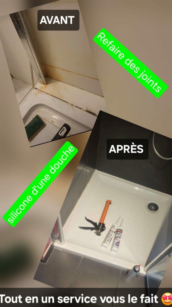 Je vous propose un service professionnel de reprise de joints en silicone, propre et soigné, incluant :